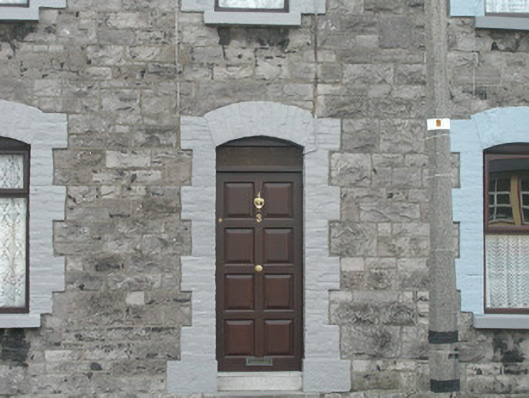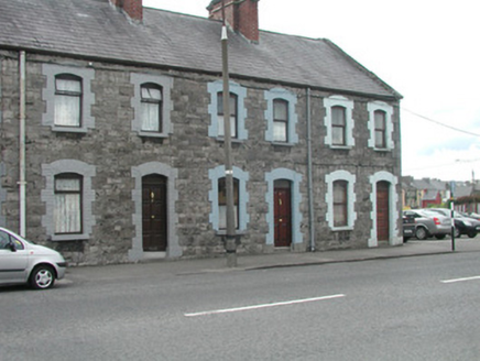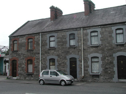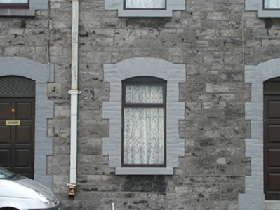 Terraced two-bay two-storey stone house, built c. 1890. One of a group of five. Pitched slate roof, roll-top clay ridge tiles, red brick chimneystack with moulded stone corbelling, moulded cast-iron gutters, rectangular cast-iron downpipes. Squared and coursed rubble limestone walling. Segmental-headed window openings, painted brick block-and-start surrounds, painted limestone sills, painted timber casement windows c. 1999. Segmental-headed door opening, painted brick block-and-start surround, plain-glazed overlight, painted timber panelled door c. 1990, limestone step. Street fronted.