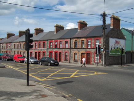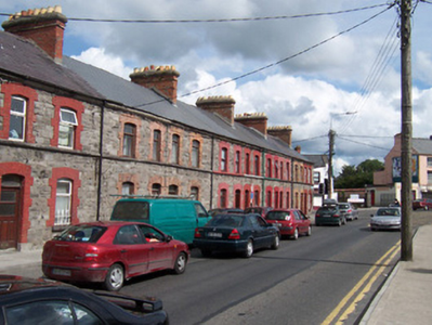 Terraced two-bay two-storey stone house, built 1886-7. One of a group of eleven. Pitched slate roof, clay ridge tiles, red brick chimneystack with corbelled stone cap, cast-iron gutters on chamfered stone eaves corbel course, rectangular cast-iron downpipe. Squared and coursed rubble limestone walling, continuous first floor sill course. Segmental-headed window openings, brickwork dressings, limestone sills, wrought-iron sill guard to ground floor, painted timber casement windows c. 1985. Segmental-headed door opening, brickwork dressings, painted timber panelled door c. 1985, plain-glazed overlight. Street fronted.