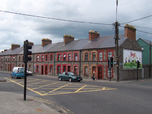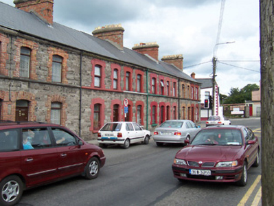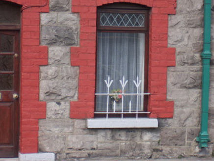 Terraced two-bay two-storey stone house, built 1886-7. One of a group of eleven. Pitched artificial slate roof, artificial ridge tiles, red brick chimneystack with corbelled stone cap, cast-iron gutters on chamfered stone eaves corbel course, rectangular cast-iron downpipe. Squared and coursed rubble limestone walling, continuous first floor sill course. Segmental-headed window openings, painted brickwork dressings, painted stone sills, wrought-iron sill guard to ground floor, hardwood casement windows c. 2000. Segmental-headed door opening, painted brickwork dressings, hardwood half-glazed door c. 2000, plain-glazed overlight. Street fronted.