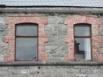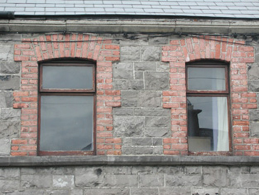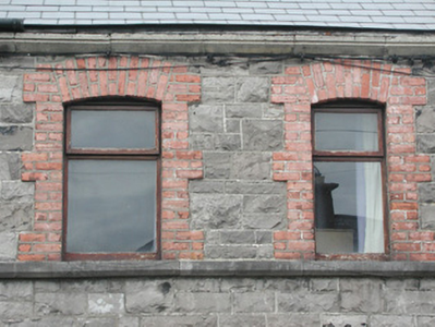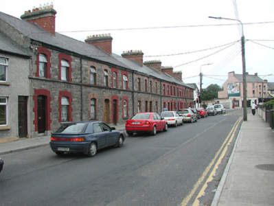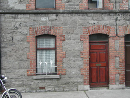 Terraced two-bay two-storey stone house, built 1886-7. One of a group of eleven. Pitched artificial slate roof, artificial ridge tiles, red brick chimneystack with corbelled stone cap, gutters missing, chamfered stone eaves corbel course, rectangular cast-iron downpipe. Squared and coursed rubble limestone walling, continuous first floor sill course. Segmental-headed window openings, brickwork dressings, painted stone sills, wrought-iron sill guard to ground floor, hardwood casement windows c. 1990. Segmental-headed door opening, brickwork dressings, hardwood five-panel door c. 1990, plain-glazed overlight. Street fronted.