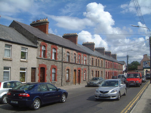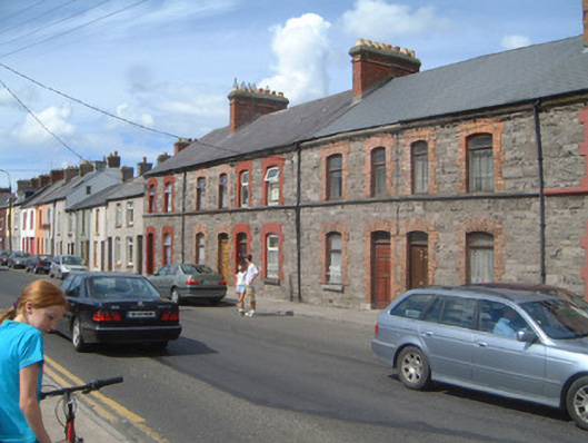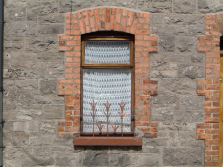Terraced two-bay two-storey stone house, built 1886-7. One of a group of eleven. Pitched slate roof, clay ridge tiles, red brick chimneystack with corbelled stone cap, cast-iron gutters on chamfered stone eaves corbel course, round cast-iron downpipe. Squared and coursed rubble limestone walling, continuous first floor sill course. Segmental-headed window openings, brickwork dressings, painted stone sills, wrought-iron sill guard to ground floor, hardwood casement windows c. 1990. Segmental-headed door opening, brickwork dressings, painted timber panelled door c. 1990, plain-glazed overlight. Street fronted.