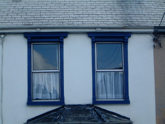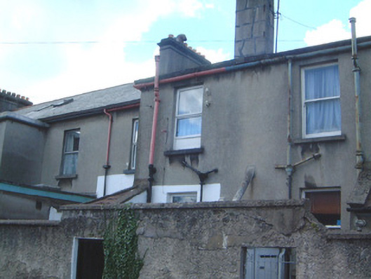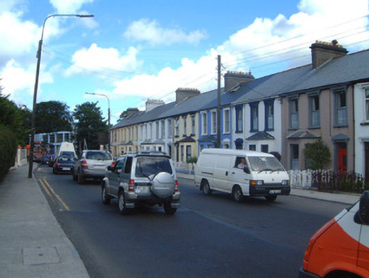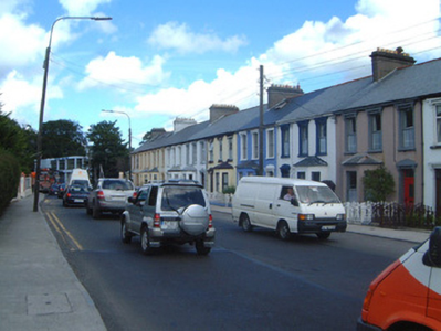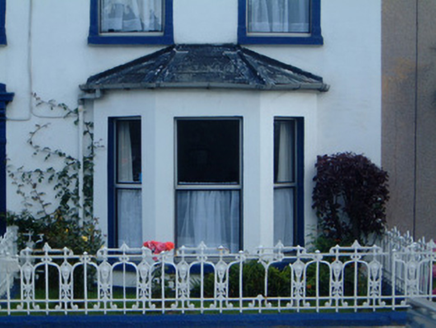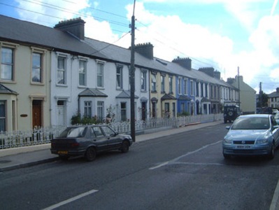 Terraced three-bay two-storey rendered house, built 1914. One of a group of eleven. Canted bay window to south-east of entrance. Pitched slate roof, clay ridge tiles, unpainted smooth-rendered corbelled chimneystack, moulded cast-iron gutters on projecting painted timber eaves. Hipped slate roof to bay, lead wood-cored rolls to hips, uPVC gutters. Painted smooth-rendered walling, projecting plinth. Square-headed window openings, narrow flanking pilasters, moulded corbels carrying flat cornice, painted masonry sills, aluminium casement windows. Square-headed door opening, narrow flanking pilasters, moulded corbels carrying flat cornice surmounted by vestigial pediment, painted timber panelled door, plain-glazed overlight. Set back slightly from pavement, decorative wrought- and cast-iron railings on painted masonry plinth wall.