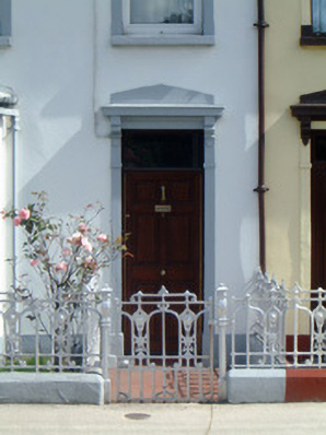 This house contributes to the integrity of the terrace of which it is part. Moulded details around window and door openings serve to enliven the composition. The decorative cast-iron railings and gates which flow all the way along the terrace further reinforce the unity. Hanley Terrace was built by and took its name from Dudley Hanley (1876-1946).