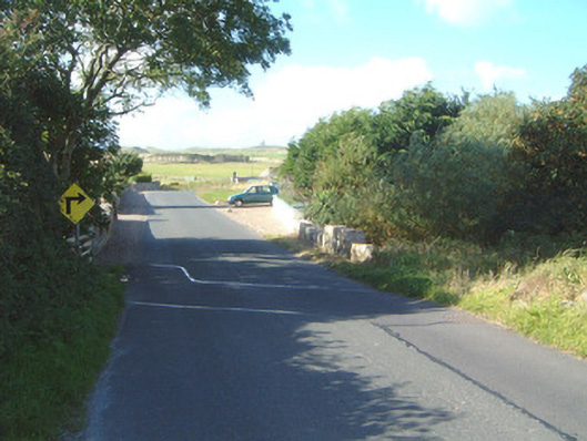 Single-span limestone road-over-river bridge, built c. 1850. Coursed squared rubble limestone walling rising to parapet without coping. Square-headed opening, limestone lintel. Bitmac carriageway, gravel verges. Spans north-south across stream to north of Cliffony.