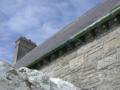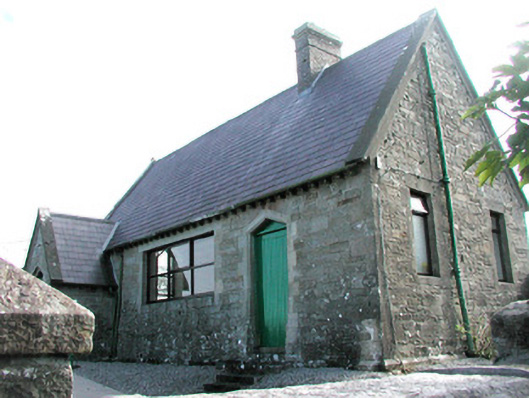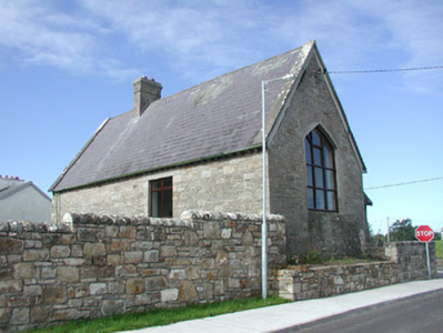 Detached single-storey limestone court house, built c. 1891. Gable-fronted entrance porch projecting from north end of west elevation. Pitched slate roof, clay ridge tiles, brick corbelled chimneystack, concrete verge capings, half-round galvanised steel gutters on exposed rafter ends. Roughly-coursed squared rubble walling, tooled ashlar quoins, chamfered plinth, panel over porch door inscribed 'COURTHOUSE' commemorating its erection by W. Cowper Temple. Square-headed window openings, tooled ashlar dressings, flush sills, hardwood casement windows c. 1990. Depressed-arch window opening to north gable, tooled ashlar dressings, flush sill, hardwood casement window c. 1990. Triangular-arch door openings, tooled ashlar dressings, splayed reveals to south door opening, porch with concave moulded reveals tapering to point at plinth blocks, painted vertically-sheeted timber doors with triangular blind panels over. Elevated above street level, gravelled paving, coursed rubble stone boundary walls, square copings, square gate piers with splayed flat-topped caps, new road intersection to north.