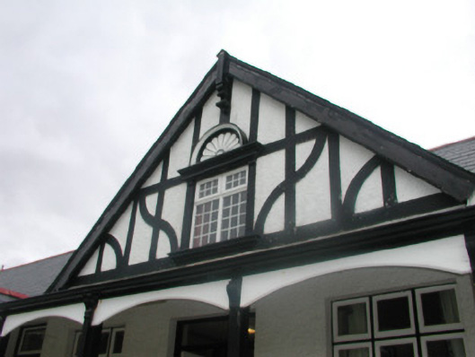 Although subjugated by extensions much larger than the original, this golf club clubhouse still retains something of its original late-Victorian feel. Timbered gables, open verandah and stained glass all speak of the atmosphere of opulence and exclusivity intended by the membership.