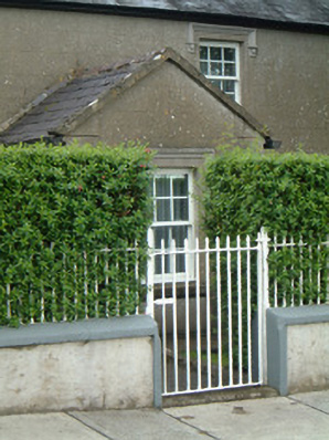 This simple well-proportioned house is a good example of the vernacular building tradition as it began to absorb modern construction techniques at the beginning of the twentieth century, in particular, the use of Portland cement. The wrought-iron boundary railings to the roadside are beautifully simple.