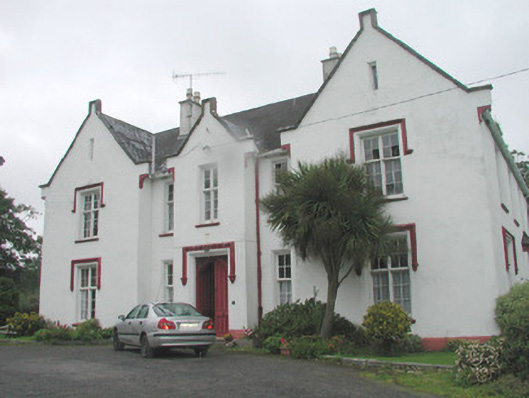 This fine Tudor Revival country house is quite distinctive with its unusual gables and transomed and mullioned windows and heavily-moulded panelled entrance doors. The extensive range of stone outbuildings is also of interest.