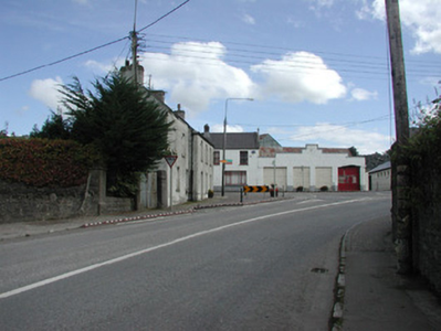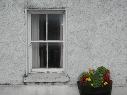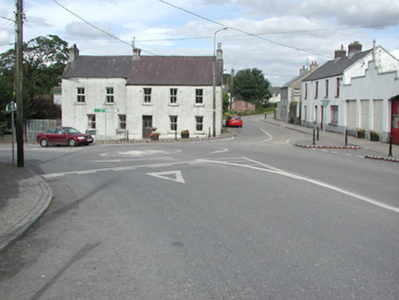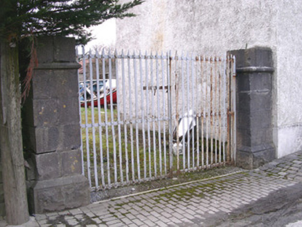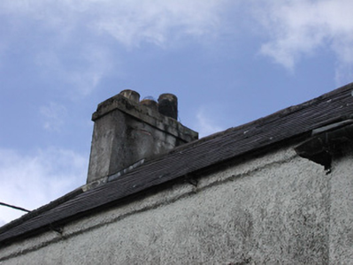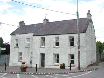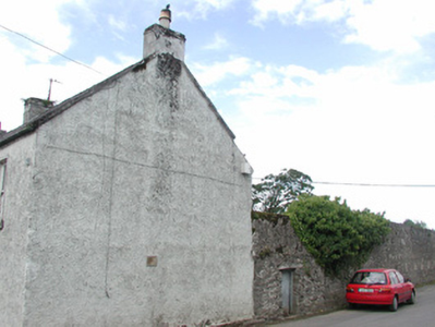 Detached three-bay two-storey roughcast house, built 1869, with two-bay extension set back to west. Pitched slate roof, clay ridge tiles, unpainted smooth-rendered corbelled chimneystacks, some clay pots, cast-iron gutters on drive-in brackets on corbelled eaves course, concrete verges to gables. Painted roughcast walls, smooth-rendered plinth. Square-headed window openings, smooth-rendered reveals, painted stone sills, painted two-over-two timber sash windows except uPVC casements to first floor extension. Deeply-recessed square-headed door opening, smooth-rendered reveals, painted timber panelled and glazed door c. 1940. Corner-sited, ashlar limestone gate piers with wrought-iron gates to west giving access to rear, high rubble stone boundary wall extends to north with square-headed door opening with painted vertically-sheeted door adjacent to house.