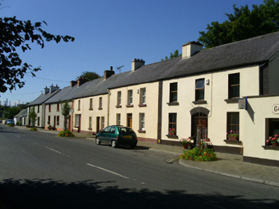 Terraced three-bay two-storey rendered house built c. 1890. Pitched slate roof, painted smooth-rendered corbelled chimneystacks, clay ridge tiles, uPVC gutters c. 1990 on painted timber fascia. Painted smooth-rendered ruled-and-lined walls. Square-headed window openings, painted stone sills, painted one-over-one timber sash windows. Square-headed central door opening, painted stone plinth blocks, hardwood eight-panel door c. 1995, plain-glazed overlight. Street fronted.