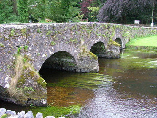 This eighteenth-century road bridge, which spans over the river Arrow, is still in constant use and forms an important entrance feature to the village of Riverstown . It exhibits robust rustic constructional detailing.