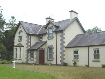 Detached multi-bay one-and-a-half-storey rendered house, with dormer attic to the south side of west elevation, built c. 1890. Originally T-plan with single-storey lean-to entrance porch in angle between wings, single-storey canted bay window to west elevation, single-storey extensions to south and east c. 1940. Pitched slate roof, clay ridge tiles, painted roughcast corbelled chimneys, gabled dormer, extruded aluminium rainwater goods, projecting painted timber fascias, painted timber barge boards. Painted roughcast walling, tooled ashlar limestone quoins. Square-headed window openings, block-and-start tooled ashlar limestone surrounds, limestone sills, uPVC casements c. 1990. Square-headed door opening to entrance porch, block-and-start tooled ashlar limestone surround, hardwood panelled door c. 1980. Set back from road in landscaped grounds, two-storey rendered outbuilding c. 1890 to rear, rubble stone boundary wall, cut stone gate piers, wrought-iron gates.