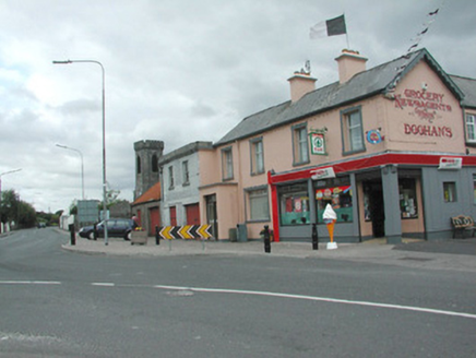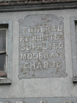A funeral home representing an integral component of the built heritage of Tobercurry with the architectural value of the composition suggested by such attributes as the compact rectilinear plan form; the diminishing in scale of the openings on each floor producing a graduated visual impression; the increasingly endangered hand painted signage advertising "FUNERAL REQUISITES SUPPLIED AT MODERATE CHARGE" and "MOTOR HEARSE & CAR FOR HIRE"; and the parapeted roof.