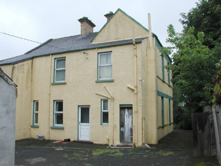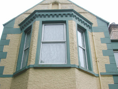 This asymmetrical house sits away from the town in its own landscaped grounds. It retains some original features including roughcast walling broken up by smooth-rendered strings and quoins.