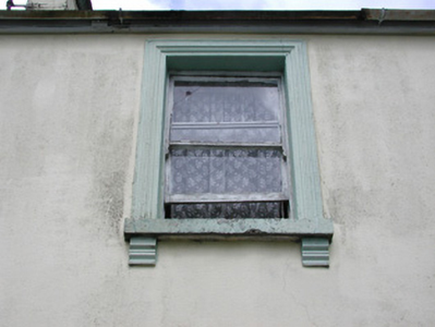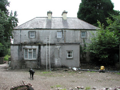 Detached three-bay two-storey rendered house, built c. 1810. Single-storey flat-roofed extension c. 1950 to north. Hipped slate roof, clay ridge tiles, painted smooth-rendered corbelled chimneystacks, cast-iron gutters on eaves corbel course. Painted smooth-rendered walling. Square-headed window openings, moulded render surrounds, stone sills on profiled corbels, painted one-over-one timber sash windows. Square-headed door opening, moulded render surround, large painted plinth blocks, hardwood panelled door c. 1980, plain-glazed overlight, semi-circular stone steps. Set back from road, gravelled forecourt, surrounded by mature trees.