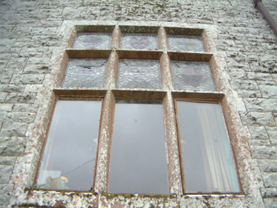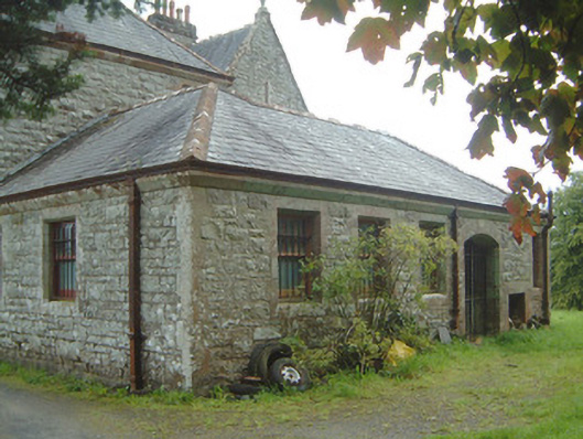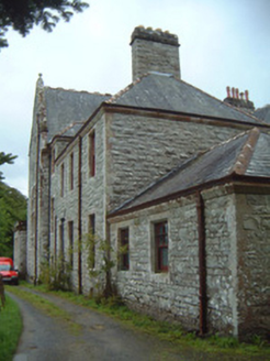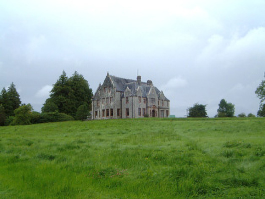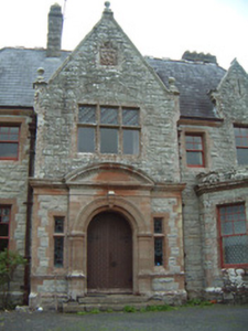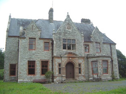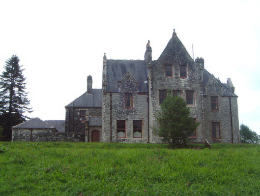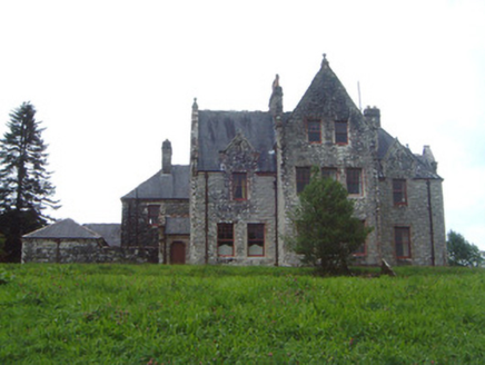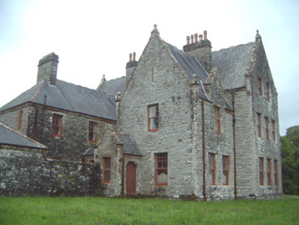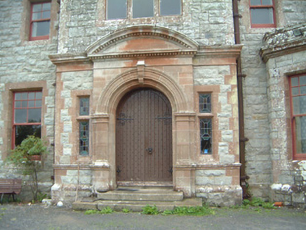 Detached multiple-bay two- and three-storey stone house, built 1898, to designs by architect James Franklin Fuller. Complex plan arranged around central three-storey block projecting as gabled breakfronts to east and west; two-storey hip-roofed front block to south of central block with gabled breakfront, gabled dormers and single-storey canted bay window to east of front elevation, single-storey flat-roofed bay window to east elevation, two-storey wing projecting to north from east end of central block dropping to single-storey L-plan wing returning west; two-storey wing projecting to north from west end of central block, single-storey gabled porch projecting from east side of north gable; various single-storey infill buildings between west and east rear (north) wings, enclosed courtyard to rear of building. Pitched and hipped slate roofs, clay ridge and hip tiles, rock-faced ashlar stone canted-cap chimneystacks with yellow clay pots, polished ashlar sandstone verge copings with corbelled springers, knops to main gable apexes and springers to main entrance gable, moulded cast-iron gutters on canted ashlar stone eaves corbel course, rectangular cast-iron downpipes. Squared-and-snecked rockfaced ashlar limestone walling, gablets with loops over some first floor windows, armorial plaque in gable over main entrance, sandstone quoins, chamfered sandstone capping to limestone plinth. Square-headed window openings, block-and-start splayed sandstone surrounds, flush sills; transomed and mullioned windows to main entrance breakfront and east breakfront, leaded-light stained glass fixed lights, painted multi-pane-over-one timber sash windows elsewhere. Round-headed main entrance door opening set in polished ashlar sandstone breakfront flanked by transomed sidelights, moulded archivolt with projecting keystone, flanking pilasters with fluting to bottom sections on moulded dado sill course on dadoes, plain frieze over with moulded cornice and central dentilled segmental pediment, varnished vertically-sheeted and studded timber double doors with decorative wrought-iron strap hinges, stone steps. Corbelled square-headed door opening to north porch, splayed polished ashlar sandstone surround, painted vertically-sheeted and studded timber door. Segmental-headed gateway in north elevation leading to enclosed yard, chamfered polished ashlar sandstone surround, wrought-iron gates. Bitmac forecourt, ha-ha to west, surrounded by mature farm and parkland, approached by driveway from north.