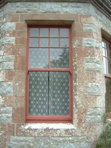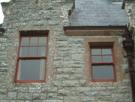 This striking eclectically-styled house combines grey limestone and red sandstone in its complex asymmetrical elevational treatments. High quality craftsmanship is evident throughout and most original details survive. The unusual sash window design is particularly noteworthy.