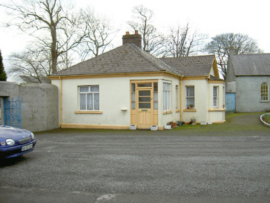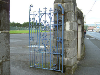 Detached multiple-bay single-storey rendered gate lodge, built c. 1880. Rectangular plan, gabled projection to west with single-storey hip-roofed canted bay, single-storey flat-roofed extension to south. Hipped artificial slate roof, artificial ridge tiles, brick corbelled chimneystack, painted timber bargeboards to west gable, uPVC half-round gutters on painted timber fascia on moulded render eaves corbel course. Felt roof covering to canted bay, moulded ogee cast-iron gutters on painted smooth-rendered moulded eaves corbel, cast-iron downpipe. Painted ruled-and-lined smooth-rendered walling, chamfered plinth, unpainted smooth-rendered walling to external boundary wall to east. Square-headed window openings, painted stone sills (chamfered to canted bay), painted one-over-one timber sash windows,paired to canted bay, painted timber casement window to north elevation. Original porch in north-west corner infilled, square-headed door opening, painted timber half-glazed panelled door, painted timber sidelights and plain-glazed overlight c. 1970. Located at main entrance to Ursuline Convent, tooled ashlar gate piers, chamfered plinths, octagonal caps, semi-circular wrought-iron overthrow with circular motif, rock-faced ashlar side walls to north and south each containing square-headed pedestrian opening, wrought-iron gates, driveway to school to west.