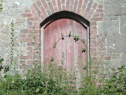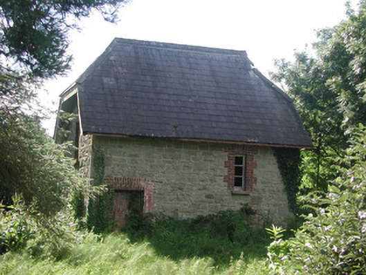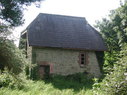 Detached single-storey with attic limestone school master's house, built c. 1870, now derelict. Half-hipped slate roof, clay ridge and hip tiles, chimney missing from north end of ridge, gabled dormer, projecting eaves on exposed rafter ends, painted timber fascias, painted timber projecting bargeboards. Squared rubble walling, tooled ashlar quoins. Square-headed window openings, red brick surrounds, stone sills, windows boarded-up. Segmental-headed entrance door opening, square-headed rear door opening, red brick surrounds, painted timber vertically-sheeted doors. Set back from road edge, overgrown garden, former school building to east.