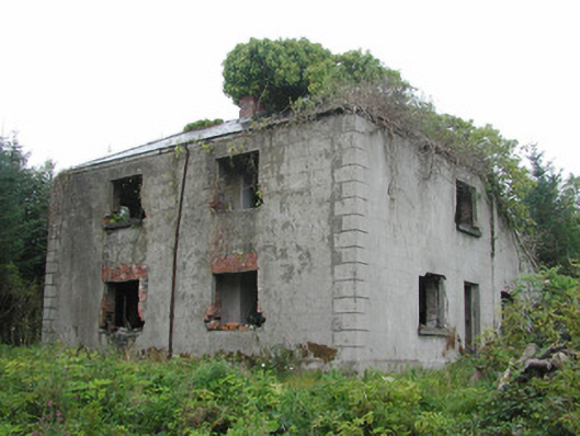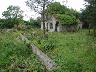 Detached two-bay two-storey rendered former gardener's house, built c. 1900, now ruin. Rectangular plan, lean-to porch to west, single-storey lean-to extension to north-east. Hipped slate roof, clay ridge tiles, unpainted smooth-rendered corbelled chimneystack, half-round cast-iron gutters on eaves corbel course. Painted smooth-rendered ruled-and-lined walling, channel-jointed quoins. Square-headed window openings, stone sills, windows missing but some fragments of leaded lights. Square-headed door opening to porch, door missing. Extensively overgrown, walled garden to south, Lissadell House to east.