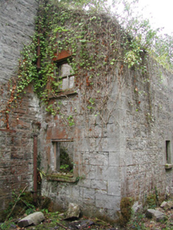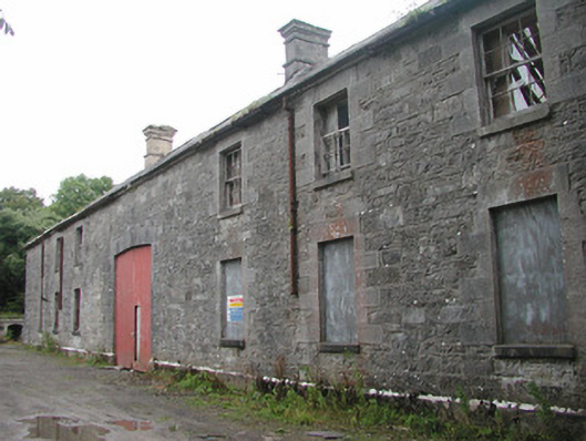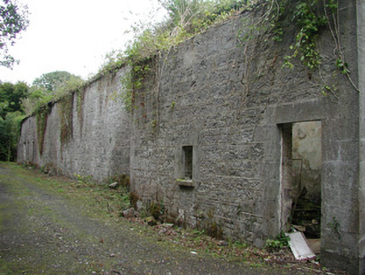 Detached stone stable yard, built in 1840's, now derelict and in an increasingly ruinous state. Two-storey stable buildings, and associated accommodation, in four ranges around central courtyard, lean-to buildings to exterior of north range. Hipped slate roofs, clay ridge and hip tiles, unpainted smooth-rendered chimneystacks with stepped capping to south range, half-round cast-iron gutters at eaves, cast-iron downpipes. Squared-and-coursed rubble limestone walling, tooled ashlar limestone quoins and plinth, external stone staircase with wrought-iron balustrade to lean-to. Square-headed window openings, tooled ashlar jambs and lintels, limestone sills, painted multiple-pane timber sash windows mainly missing or boarded-up. Segmental-headed carriage arches to south and west elevations, tooled ashlar limestone block-and-start jambs, ashlar voussoirs, painted vertically-sheeted timber double doors with wicket gate to south, doors missing to west. Square-headed entrance door opening, painted timber panelled door, three stone steps. Situated on drive leading to Lissadell House, set among trees.