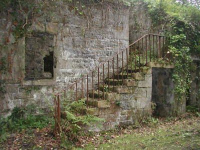 This imposing stable yard, while now in a state of dereliction, still retains some of its original character. It once contained the coach house, stables, tack rooms and accomodation for stable boys, coachmen and house footmen as well as a large riding school, now ruined, for exercising horses under cover. High quality materials and craftsmanship are combined to create a satisfying whole entirely in keeping with the perceived status of the Gore-Booth family and its desire to impress through the magnificence not only of the main house but the entire demesne.