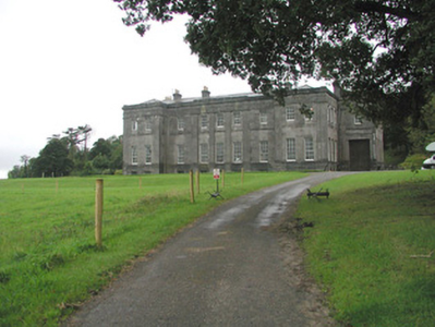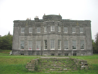 Detached nine-bay two-storey over basement Ballysodare limestone mansion, built between 1830 to 1835, inhabited from 1833. Designed in Greek Revival style by Francis Goodwin for Sir Robert Gore-Booth (1784-1835). Entrance front (north) elevation with three-bay pedimented central projection, lower storey originally open to east and west to form porte-cochere, flanked by three-bay side sections; east elevation with five-bay central section between two-bay projections, three-bay central breakfront; south elevation with three-bay central bow with raised parapet flanked by three-bay sections; west elevation with four-bay central section between four-bay projections each two-bays deep. Pitched and hipped slate roofs set behind parapets, lead ridge and hip cappings, ashlar chimneystacks with stepped capping and yellow clay pots, pyramidal rooflights over west gallery, lead hoppers and downpipes. Tooled and finely jointed ashlar walling, entablature with plain frieze and square unadorned cornice to all four sides, stepped architrave to north, east and west sides, carried on giant order Doric pilasters on projecting basement plinth, first floor platband. Square-headed window openings, painted six-over six timber sash windows to porte-cochere and first floor, nine-over-six to ground floor, six-over-three to basement. Square-headed door openings at porte-cochere, varnished vertically-sheeted timber double doors with wrought-iron strap hinges, flanked by Doric pilasters, projecting flanking walls on line of plinth. Situated on elevated site overlooking Sligo Bay, landscaped grounds, lawns to south terraced with stone steps on axis with bow window, woods beyond. The estate contains a variety of outbuildings which are recorded separately.