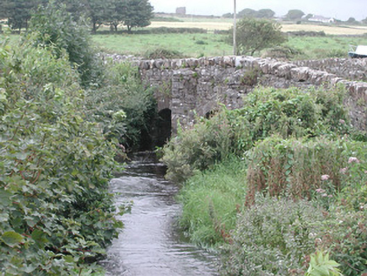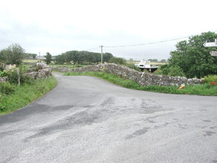 Double-span stone road-over-river bridge, erected c. 1830. Uncoursed rubble stone masonry, triangular cut water, segmental-headed arches with rubble stone voussoirs, rubble stone copings to parapets. Narrow grass verges flanking macadamed carriageway. Spanning east-west over Ardnaglass River, in rural setting.