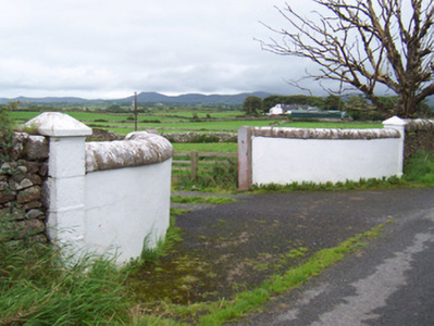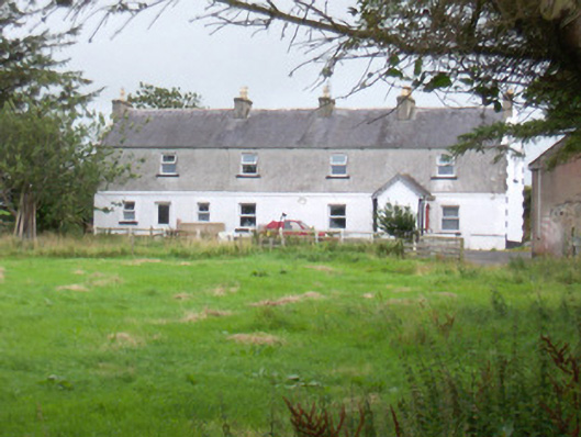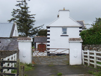 Detached multi-bay two-storey rendered house, built c. 1880. Gabled single-storey porch to north end of east (front) elevation, pedimented projection to north end of west (rear) elevation. Pitched slate roof, clay ridge tiles, unpainted smooth-rendered chimneystacks with yellow clay pots, concrete verges to gables, cast-iron rainwater goods. Painted smooth-rendered walling, painted quoins to gables, painted timber decorative barges to porch. Square-headed window openings, painted stone sills, uPVC casement windows c. 1995. Segmental-headed entrance opening to north side of porch, hardwood panelled door with sidelights and overlight c. 1980. Corrugated iron-roofed barn to north, set well back from road among mature plant and tree growth overlooking Sligo Bay, cow tail pump to adjacent field, decorative metal entrance gate to yard, dry stone boundary walls, curved painted smooth-rendered walls to entrance from road with segmental limestone copings.