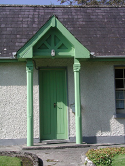 This simple but attractively-designed former gate lodge is a good example of the type and retains a significant amount of original or early fabric. The building is characterised by its finely-crafted timber entrance porch and makes an interesting roadside architectural feature. Fine carved limestone gate posts are also of interest and the panelled double doors are a particularly handsome feature.