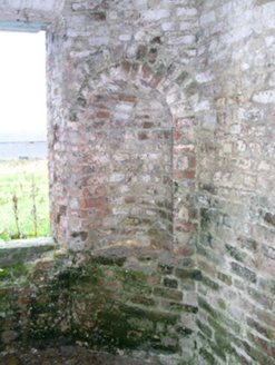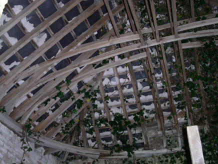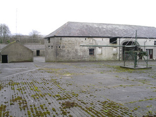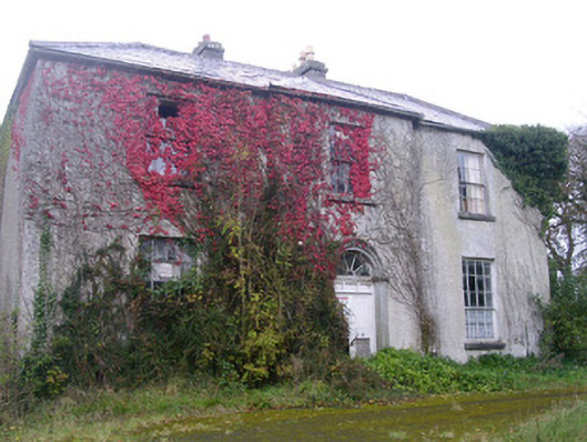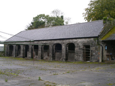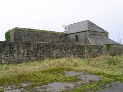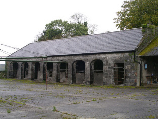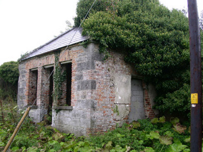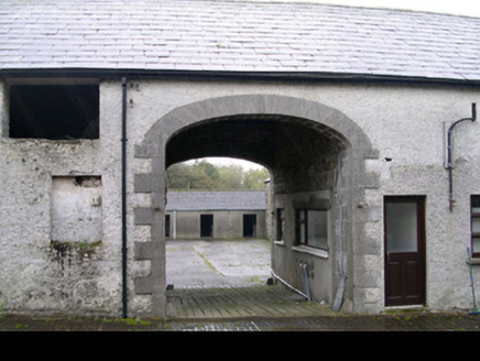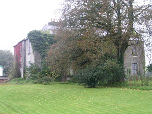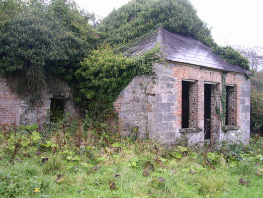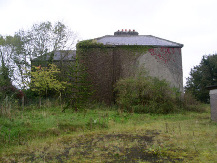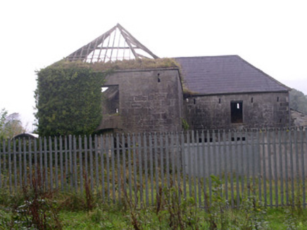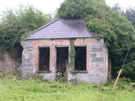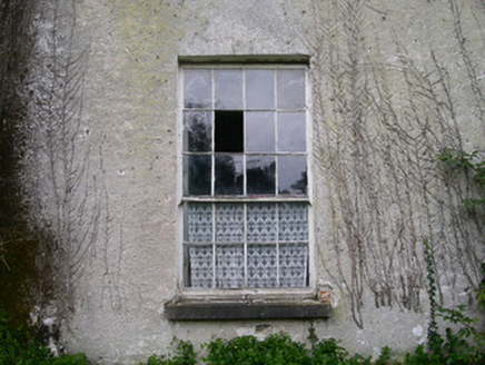 Detached three-bay two-storey-over-basement rendered former house, built c. 1830, now derelict and used as store. L-plan, single-bay break-front to front (south) elevation. Hipped slate roof, clay ridge tiles, unpainted smooth-rendered corbelled chimneystacks with clay pots, half-round cast-iron gutters on eaves corbel course. Unpainted roughcast walling. Square-headed window openings, smooth-rendered reveals, limestone sills, painted twelve-over-eight timber sash windows to ground floor, eight-over-eight to first floor, six-over-six to other elevations. Round-headed entrance door opening, plain flanking polished ashlar pilasters, moulded archivolt, wrought-iron cobweb fanlight, original door missing. Set in former demesne. Farmyard to east with single- and two-storey roughcast and stone buildings some with elliptical-headed carriage openings. Two-storey L-plan outbuilding to north, hipped slate roof, squared and coursed rubble stone walling, ashlar dressings, in advanced state of dereliction. Detached three-bay single-storey stone former summer house, built c. 1885, now derelict, to the northeast of main house. Hipped slate roof, clay hip tiles. Squared and coursed rubble limestone walling, brick eaves corbel course. Square-headed window openings, brick dressings, limestone sills, windows missing. Square-headed door opening, brick dressings, door missing. Interior contains two round-headed semi-circular brick niches to south-east and south-west corners. Roof structure designed to form base for shallow dome on elliptical plan. South-facing, set against rubble stone north wall of former walled garden, date stone 1883, Doonally House to southwest.
