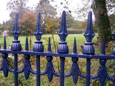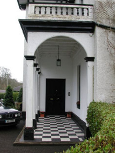 This splendid house is an impressive and striking structure which is enlivened by the play of projecting elements of the façade, its richly detailed pediment and eaves, decorative barges to the porch, and delicately designed open porch. The impressive entrance gate screen makes a fitting introduction to Ballyglass House. Railings and gate piers are well-executed and exhibit competent craftsmanship.