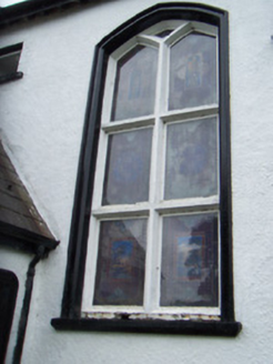 This splendid house is part of a coherent complex in a woodland setting. The main house is richly detailed with steeply- pitched gabled roofs, decorative barges to the porch, and large stairwell window. The plainer wings and two-storey outbuilding complete the composition.