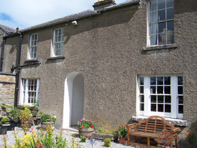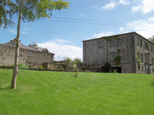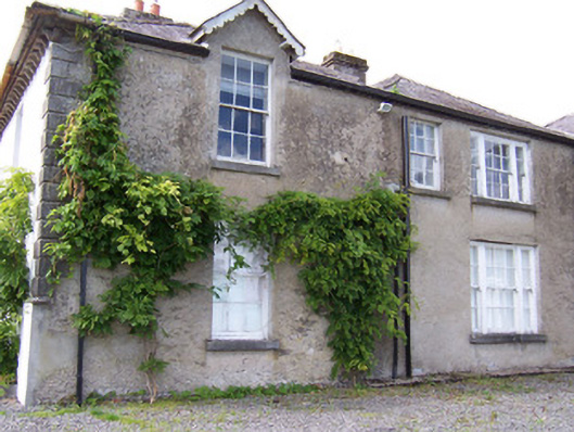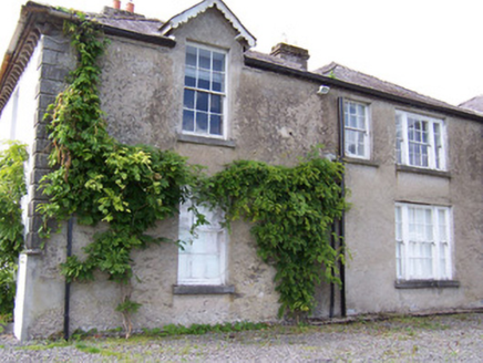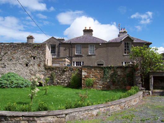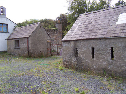 This sprawling house appears to have a complex evolution as evidenced in its various blocks and details. Stone corbelling and quoins on the front elevation are of particular interest. Original sash windows survive.