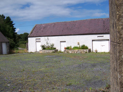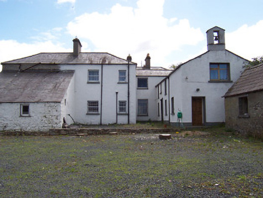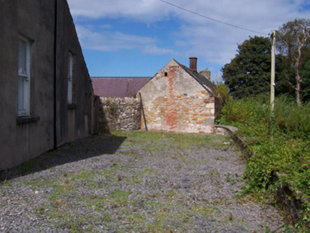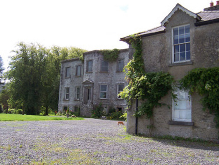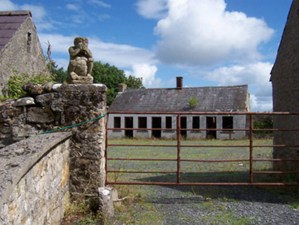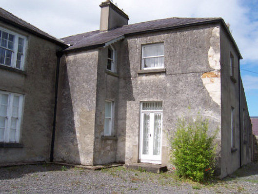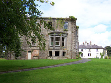 Detached three-bay two-storey rendered house, built c. 1810. Double-pile south-facing main house, two-storey north-east wing with hipped roof in line with main house, two-storey north-west wing with pitched roof perpendicular to main house. Hipped slate roofs, clay ridge and hip tiles, unpainted smooth-rendered corbelled chimneystacks with clay pots, gabled dormers with painted timber decorative barges to east and west ends of south block, half-round cast-iron gutters on projecting stone eaves carried on triangular stone corbels to south elevation, extruded profiled aluminium gutters on corbelled eaves to other elevations. Painted roughcast walling to south elevation, chamfered stone string course over smooth-rendered plinth, ashlar limestone rusticated quoins. Unpainted smooth-rendered walling to east and west elevations. Evidence of entrance portico having been removed. Square-headed window openings, dressed limestone sills, painted six-over-six timber sash windows to ground floor, six-over-three to first floor south elevation, tripartite to east and west elevations. Square-headed entrance door opening, painted timber half-glazed double doors c. 1995. Round-headed porch opening to west elevation. Gravelled stable courtyard to rear with various sheds and outbuildings. Gravelled forecourt, lawns, original Longford House to south-west. A fireplace with the inscription 'GEORGE CROFTON 1632 ELIZABETH CROFTON', presumably removed from the old house, is set against a wall to the west.