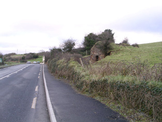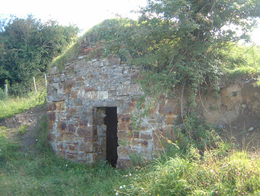 Detached single-bay single-storey rubble masonry ice-house, built c. 1830. Squared rubble masonry walls, earth-covered brick barrel-vaulted roof. Square-headed door opening to north elevation, roughly-dressed limestone lintel, limestone drainage stone to threshold. Square-headed window opening to upper section of south elevation, now partially blocked-up. Set into hill overlooking Ballysadare Bay, north elevation facing road, dry-stone retaining wall to roadside.