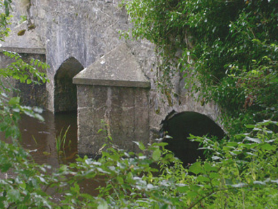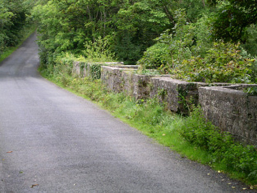 Seven-span stone road-over-river bridge, built c. 1840. Rubble limestone walling, insitu concrete triangular cutwaters with pyramidal caps to east side c.1930, original cutwaters to west side extend to full height of parapet forming refuges some with stone slab seats. Segmental-headed arches, rubble stone voussoirs. Rubble stone parapet to west, thinner parapet to east rebuilt c. 1930. Bitmac carriageway, narrow grass verges to either side. Spans north-south across Owenmore River.