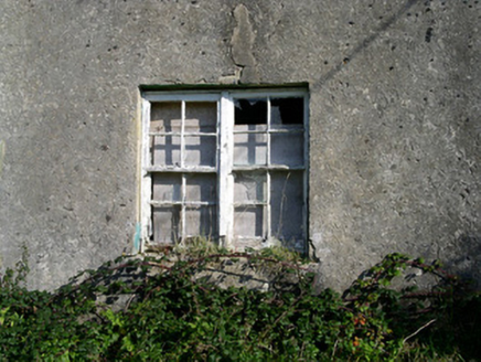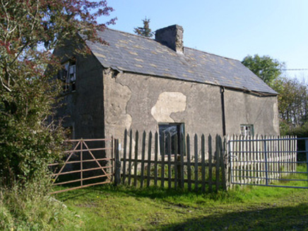 Group of semi-detached two-bay one-and-a-half-storey rendered former estate workers houses, built c. 1890, now derelict. Pitched slate roofs, clay ridge tiles, unpainted smooth-rendered corbelled chimneystack, half-round cast-iron gutters. Unpainted smooth-rendered walling. Square-headed window openings, painted four-over-four timber sash coupled windows. Square-headed door openings on gables, painted vertically-sheeted timber doors. Equally spaced along roadside.