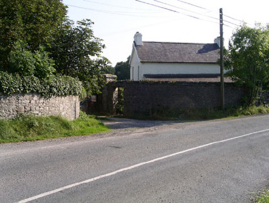 Detached three-bay two-storey rendered gate lodge, built c. 1880. Rectangular plan, single-storey full-width lean-to to rear (north), single-storey flat-roofed extension to north-east c. 1990, gable-fronted entrance porch c. 2004 to south. Pitched slate roof, clay ridge tiles, painted smooth-rendered corbelled chimneystacks, half-round cast-iron gutters on eaves corbel course, cast-iron downpipes, painted timber eaves and bargeboards to porch. Painted roughcast walling, smooth-rendered ruled-and-lined walling to porch. Square-headed window openings, smooth-rendered reveals, limestone sills, painted two-over-two timber sash windows, fixed multi-pane casement windows to east and west elevations. Square-headed door opening in entrance porch, painted half-glazed timber door with two bottom panels. Entrance gateway to north-east with rubble limestone piers, dressed limestone caps, rubble stone quadrant walls, wrought-iron flat-bar gates. Rear of house faces road, front looks across fields to Markree Castle.