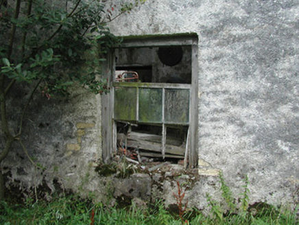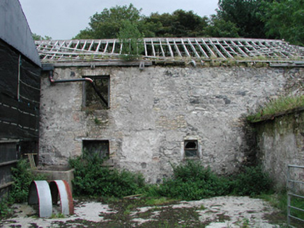 This farmyard complex, now derelict, is typical of such groups of estate buildings. Evidence of the, rapidly-disappearing, fabric, such as fragments of sash windows, still remain. The group is of historic significance as it contributed to development of the demesne.