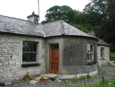 Detached five-bay single-storey stone house, built c. 1830. Forward-thrusting bow front to central bay of front (south) elevation, return wing to west running to north range parallel to front building, forming enclosed courtyard. Pitched slate roofs, curved slating to bow, clay ridge and hip tiles, unpainted smooth-rendered corbelled chimneystacks, mortar verges, half-round gutters c. 2004 on eaves corbel course. Rubble stone walls (formerly rendered), ashlar limestone walling to bow. Square-headed window openings, tooled limestone dressings, limestone sills, painted two-over-two timber sash windows. Square-headed entrance door openings, chamfered ashlar limestone dressings, hardwood panelled and glazed timber doors. Set in garden, separated from surrounding parkland by wire fence.