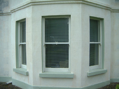 This rather plain house is somewhat enlivened by the canted bay window. It retains its sash windows and has attractive wrought- and cast-iron boundary gates.