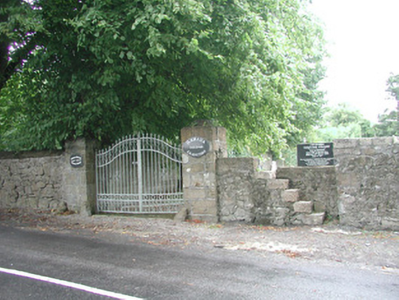 Cemetery laid out, c. 1890. Uncoursed rubble stone boundary wall, concrete coping added c. 1950. Coursed ashlar stone gate piers with cylindrical domed carriage wheel deflectors. Decorative wrought-iron double gates. Stone style to east of gates with stone steeps let into wall thickness. Grass lawns, gravelled paths, nineteenth and twentieth century graves marked by low stone plinths with several engraved and carved Celtic crosses. Rubble stone, ivy-covered boundary walls to east, north and west. Fronts to main road.