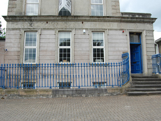 An elegantly-composed substantial former bank, prestigiously sited on Farnham Street which forms an ensemble of important civic and ecclesiastical buildings. The building was designed by William Hague (1836-1899) architect of many buildings in Cavan town. Its classically inspired design is typical of many banks built in the period and was intended to lend gravitas and inspire confidence in banking customers. The classically-derived rendered dressings have been left unpainted to resemble ashlar stone. This finely wrought railings enrich and enliven the overall appearance of the building and streetscape.