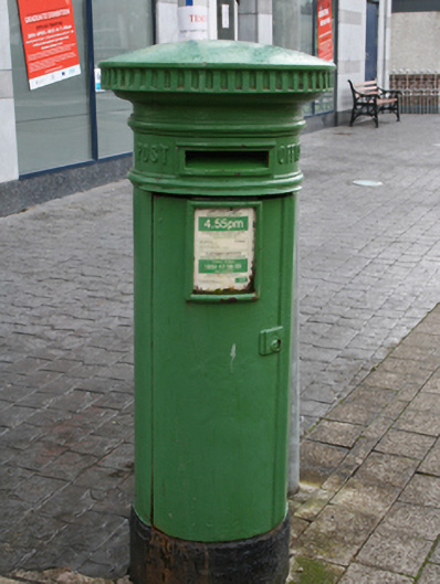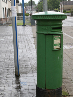The survival and use of the traditional pillar post box is an important architectural feature of the historic character and streetscape of Farnham Street. Despite loss of the decorative royal insignia this pre-independence post box is an authentic piece of historic street furniture, which through the repainting in green and removal of the monarch's initials gives insight into the changing history of the town.