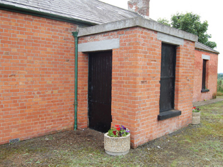 Detached five-bay single-storey former dispensary, built c.1930, having projecting flat-roofed entrance porch and recessed end bay to north-east, two-bay flat roofed extension to south-west. Now disused. Hipped-slate roof with clay ridge tiles, red brick chimneystacks, sections of cast-iron rainwater goods with moulded hopper head, cut-stone coping to entrance porch. Red brick Flemish-bonded walls, window openings with cut-stone lintels and sills. Boarded windows, one visible one-over-one timber sash to front and remnants of multiple pane timber casement to rear. Sheeted timber doors to both sides of entrance porch. Set slightly back from road, railings removed.