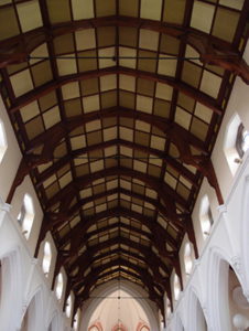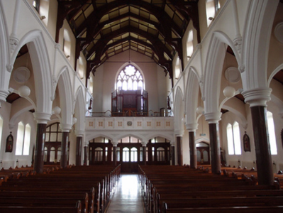 This building is a good example of the late Decorated Gothic style, built between 1927 and 1930 by James Wynne of Dundalk, to the designs of Ralph Byrne (1877-1946). It replaced a cruciform-plan church that was located north-west of Market Street behind the former Market House and north of the Fair Green. On its new elevated site, and also dedicated to St. Michael, it dominates the approach into Cootehill from the south-east. It is well composed, with expressive use of volume and fine detailing. The large bright interior retains many notable features of artistic interest. Its expression is akin to that of cathedral architecture on a slightly reduced scale.