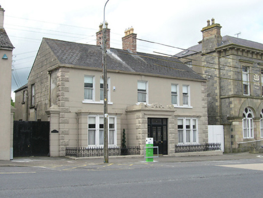A substantial Victorian town house designed by architect of the adjacent bank, William Murray, that has a strong presence on Market Street and is not overshadowed by the former Provincial Bank building to the north, the Church of Ireland church to the north or the Court House opposite. It has elaborate stucco detailing including rusticated ground floor, vermiculated quoins, and moulded cornices, all indicators of late nineteenth-century prosperity. It retains much of its historic fabric including timber sliding sash windows, handsome entrance screen and fine cast-iron railings. The house is also notable as the birthplace of John Charles McQuaid, former Archbishop of Dublin.