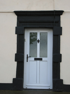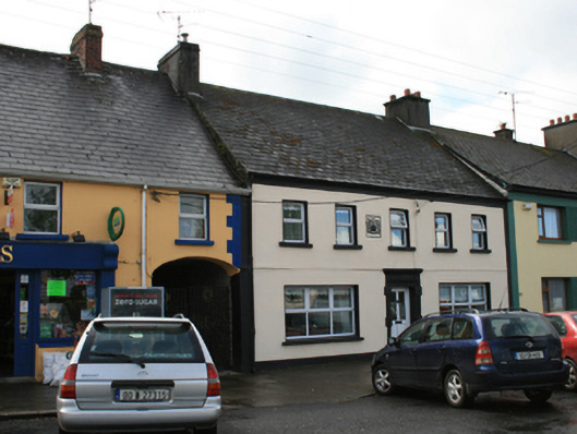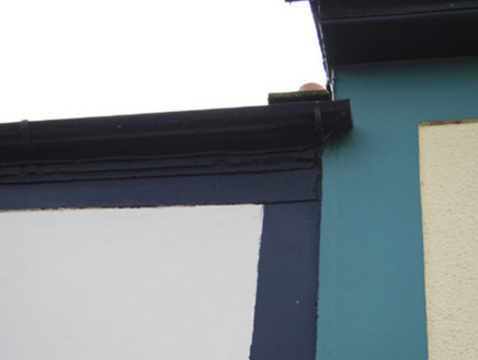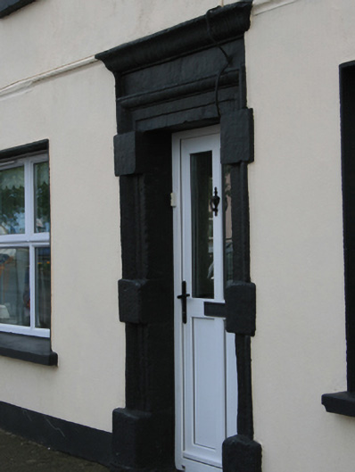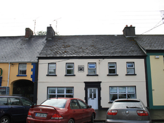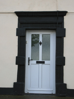 Apparently the former coachman’s house to Cabra Castle, this house is said to have been thatched until the 1950s. It is an important example of an eighteenth century house in the planned town. The steeply pitched roof, gable chimneystacks and Gibbsian door surround are indicative of its eighteenth century construction. The date plaque is particularly interesting, carved with the emblem of the Pratt family, the town landlords. The related outbulding to the rear adds to its setting and context.