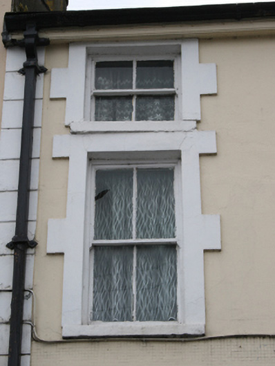 This pair of early nineteenth century townhouses was combined as one in the twentieth century. It retains much of its original roof and upper façade. The diminishing floor height from first to second floors is expressed strongly, with the surrounds of the upper windows sitting on the lower ones belows. The render detailing and substantial chimneystacks give the building a strong identity and it adds to the architectural variety of the streetscape.